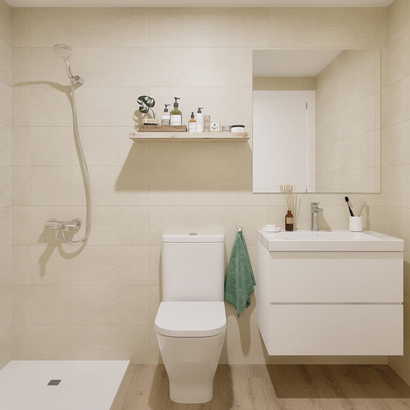 Descubre nuestros elegantes baños, diseñados para ofrecerte un oasis de confort y estilo. Con acabados modernos y materiales de alta calidad, cada baño combina funcionalidad y estética. Amplios espejos y duchas de lujo crean un ambiente relajante, ideal para tus momentos de bienestar. ¡Transforma tu rutina diaria en una experiencia de spa en casa!